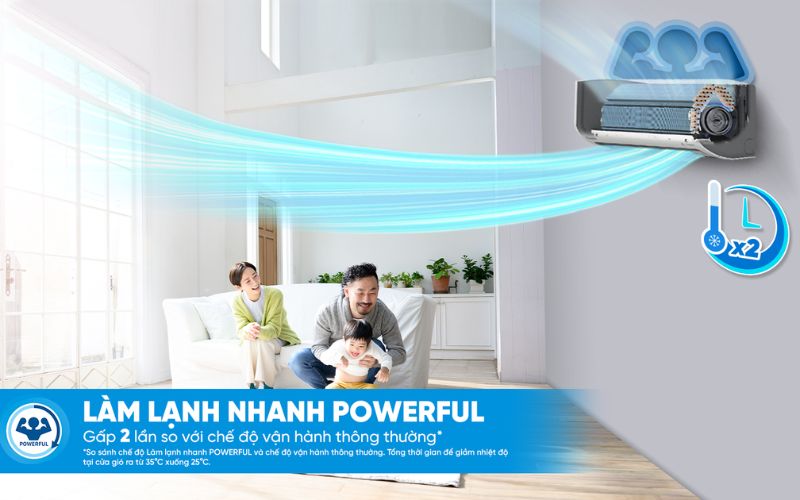 Chế độ Powerful tăng cường công suất và lưu lượng gió ngay khi kích hoạt, rút ngắn thời gian làm lạnh, cho bạn tận hưởng không khí mát lạnh gần như tức thì.